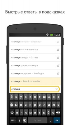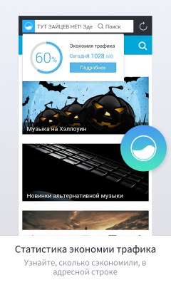 Помимо этого, в Яндекс.Браузере большая ставка сделана на экономию трафика — местный режим Турбо 2.0 позволяет резко сократить потребляемые по Wi-Fi или мобильной сети данные. Есть оригинальные и удобные функции вроде быстрого звонка (клик по телефону на странице вызывает его набор). Также Яндекс.Браузер обладает своей системой защиты от недоброжелательных сайтов и синхронизацией с десктопной версией. Интерфейс браузера хорошо оптимизирован для смартфонов — адресная строка находится внизу. Для тех, кто хочет посмотреть на будущее мобильного браузера от «Яндекса», предлагается специальная альфа-версия с новыми тестовыми функциями и свежим интерфейсом.