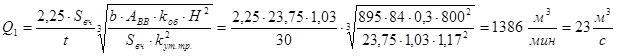 q2=0,00132 м 3 /с – газовыделение с 1 т угля.