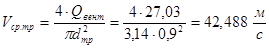 — средняя скорость движения воздуха в трубопроводе на прямолинейном участке, м/c.