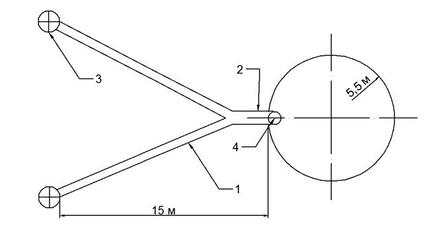 1 – локальные шиберы; 2 – общий шибер; 3 – вентиляторы; 4 – трубопровод.