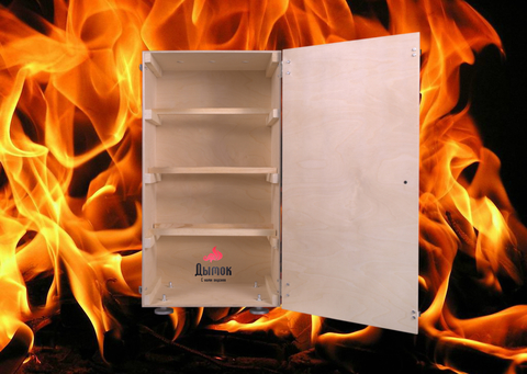 - Шкаф изготовлен из березовой фанеры, которая в свою очередь отлично отводит лишнюю влагу во время копчения.