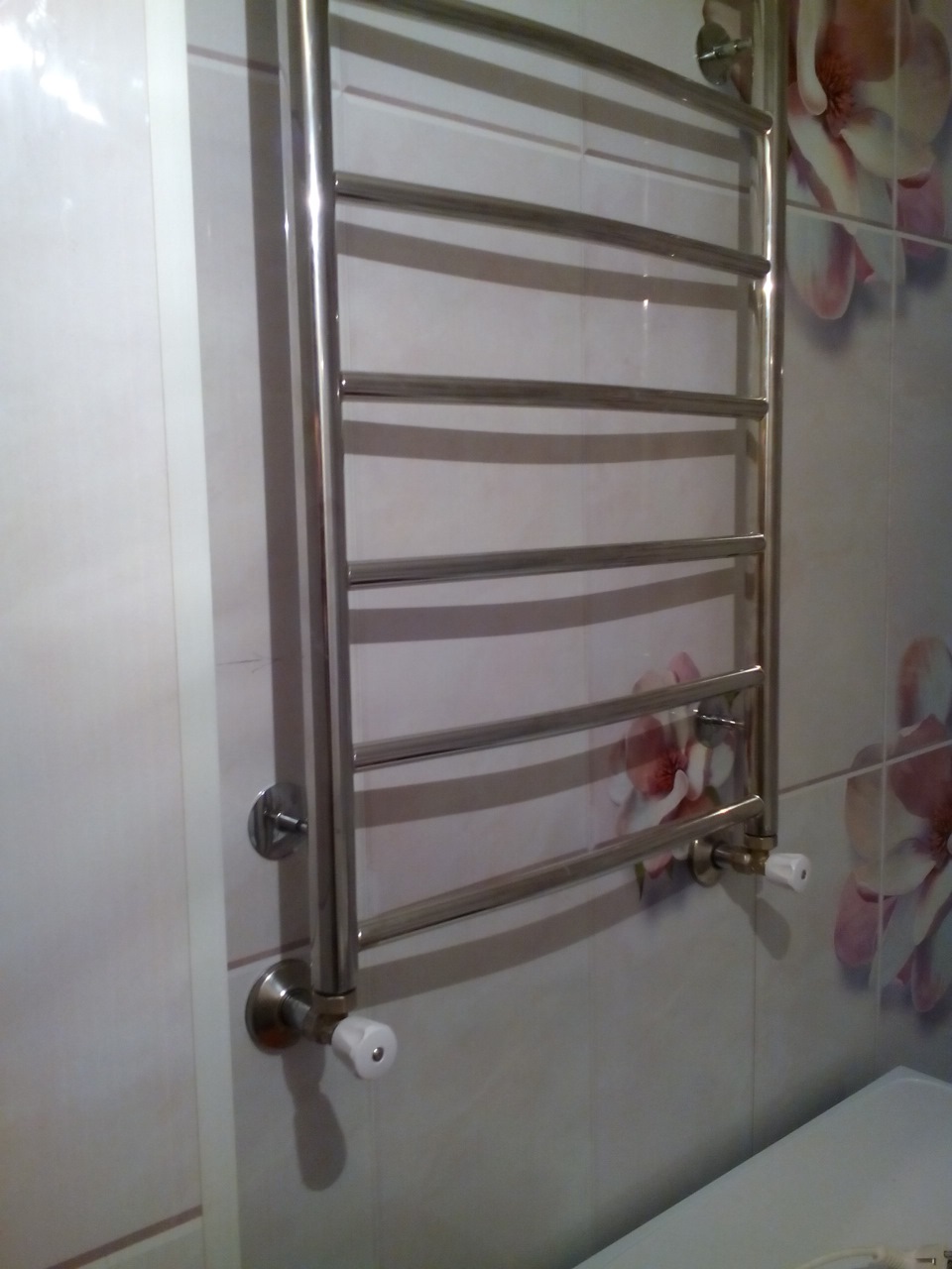 Установи сушилку.хоть на уголках хоть на прямых подводах -под плиткой один хер в стене замуровано все .сделать краны ранее на магистрали…нахрена все эти крутилки на виду.не пойму я этого никогда.