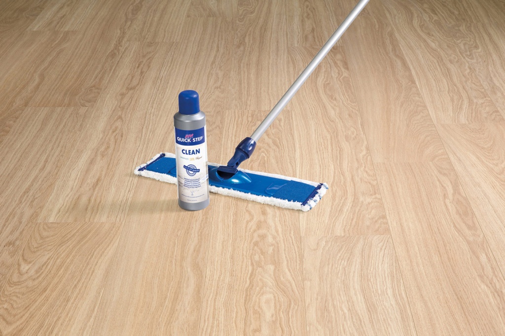 Используйте фирменные средства по уходу Quick Step. Специальный комплект Cleaning Kit помогает очистить пол с помощью сухой уборки или уборки влажной микрофиброй.