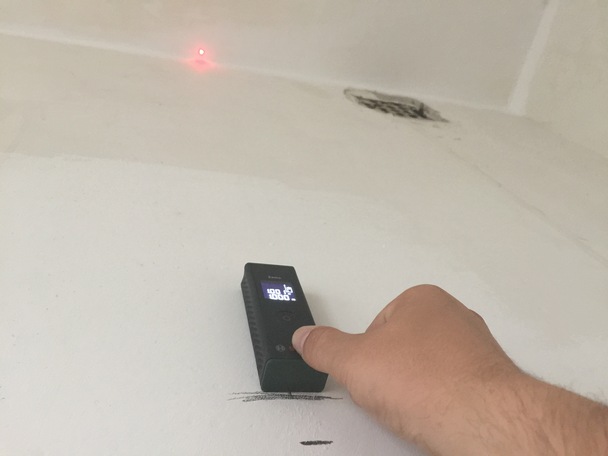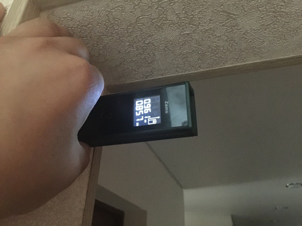 Для получения точных результатов дальномер желательно зафиксировать в одном положении, например, прислонив к устойчивой поверхности. Это больше носит рекомендуемый характер и связан он с тем, что с руки показания постоянно меняются в большую или меньшую сторону за счет даже небольшого перемещения лазера. Если же нужно измерить расстояние грубо в метрах (посчитать сколько примерно метров того же кабеля нужно проложить вдоль стен), то проблем нет, можно и с руки. Важно, измерение производятся, отталкиваясь от нижней стороны дальномера.