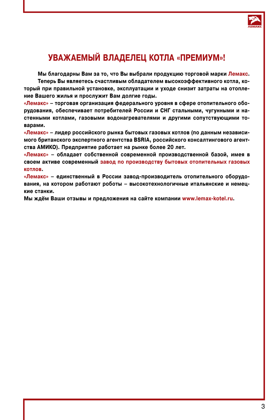 Гарантийные обязанности завода ЛЕМАКС на газовый напольный котел серии ПРЕМИУМ