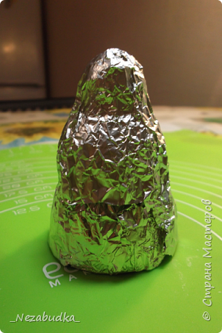 Затем нужно смять из фольги небольшой шарик, положить его сверху на заготовку и закрепить фольгой.