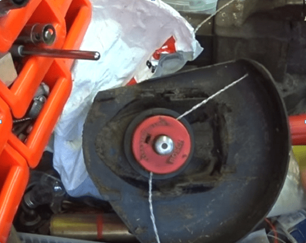 Далее, как обычно, леска для триммера вставляется в косильную головку или наматывается на катушку, а затем вставляется в головку, после чего обрезаются торчащие концы так, чтобы они не касались защитного кожуха.
