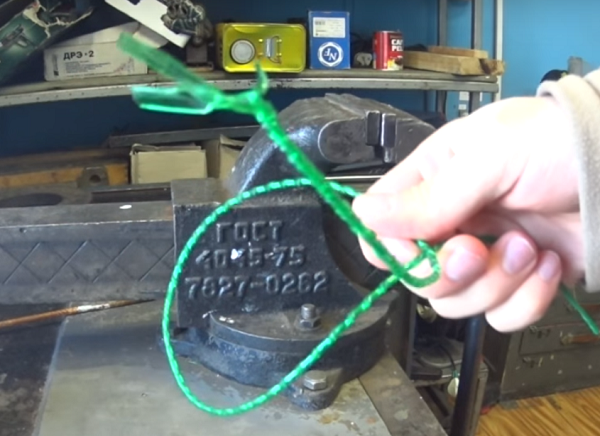 Для изготовления такой веревки нам понадобится бутылкорез, шуруповёрт и строительный фен. Бутылкорез заслуживает отдельного внимания, спасибо его изобретателю адвокату Егорову (этот товарищ ещё и байдарку из строительной плёнки делал — такая статья у нас тоже есть. Прим. редактора), ссылка на видео по его изготовлению в описании.