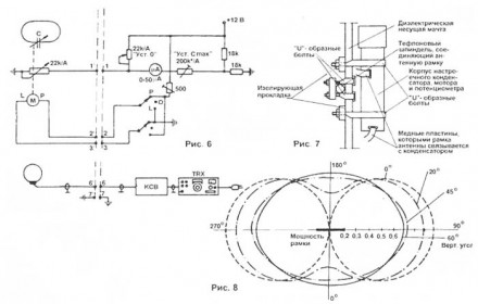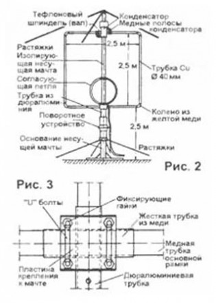 Для упрочнения нижнего горизонтального куска рамки на него натягивается на длине примерно 300 мм нагретая медная трубка несколько большего диаметра. Мотор, вращающий конденсатор, укрепляется на стальной трубе на высоте над крышей около 2 м. Для придания жесткости всей конструкции ниже мотора устанавливается не менее трех растяжек.