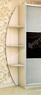 В данной категории представлены изделия современного направления мебельного производства: радиусные угловые шкафы купе. Эти модели гармонично вписываются в любую планировку, благодаря оригинальной конструкции. При этом радиусные шкафы имеют большую вместимость. Внутреннее наполнение шкафов — комбинированное: удобные полочки, выдвижные ящики (в некоторых моделях) штанги для верхней одежды и крючки, всё это позволит эффективно решить проблему размещения и поиска вещей. Радиусные шкафы могут быть нескольких видов: вогнутые, выпуклые, симметричные, асимметричные. Каждая модель изготавливается в своих стандартных размерах (изменение не возможно).