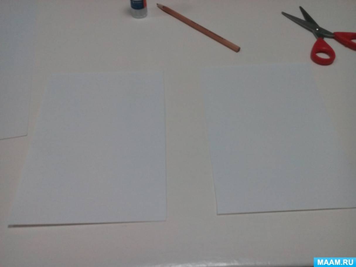 Нужно взять лист сложить его пополам, разрезать на две части.