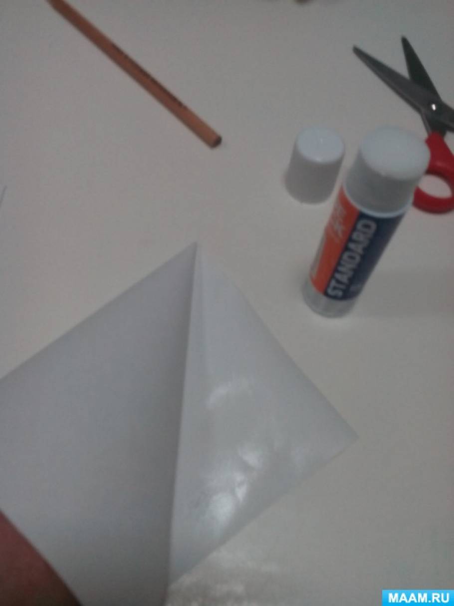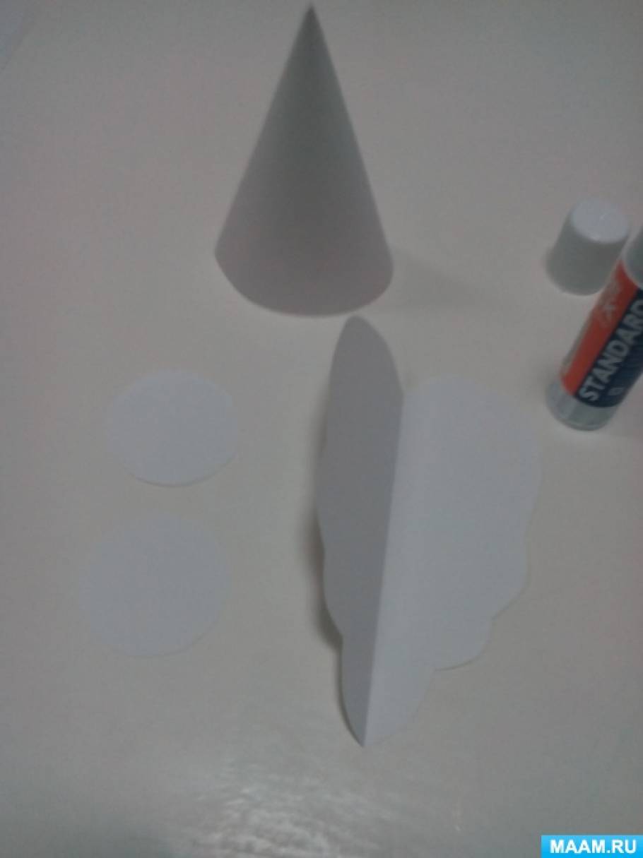 Сделать из одной половинки кулек, сразу промазать край клеем, прогладить. И отрезать лишнее внизу, столько -какой высоты будет фигурка.