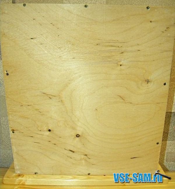 С помощью уголков из фанеры конструкция скрепляется в углах