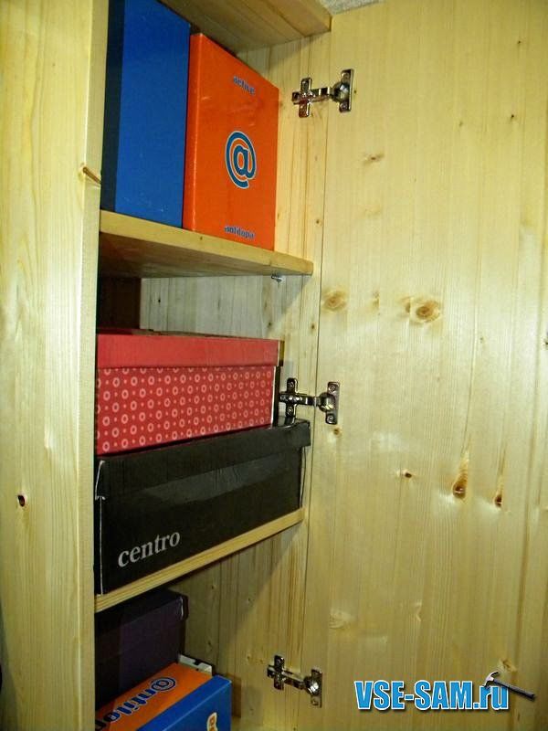 - вырезаем полки и устанавливаем. В конце работы прикрепляем створки.
