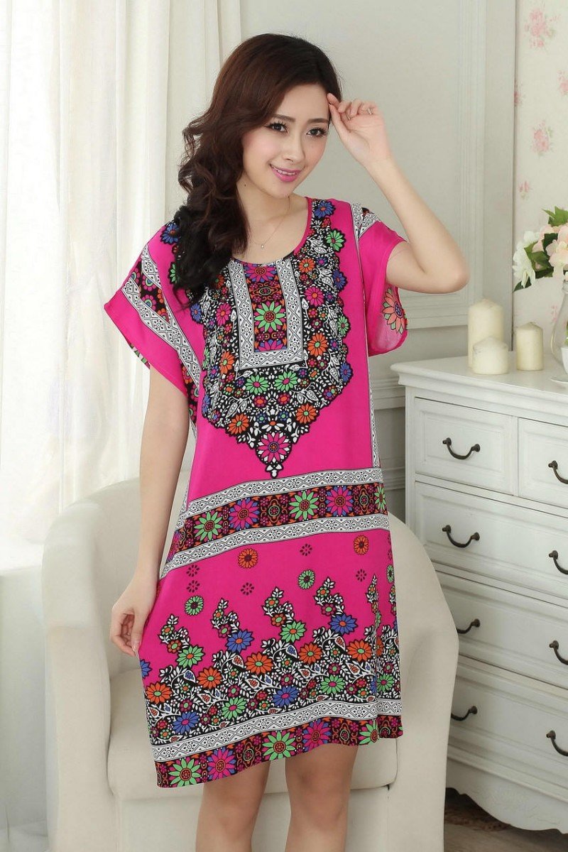 - женские домашние халаты в этно стиле и платья с перепадом длины;