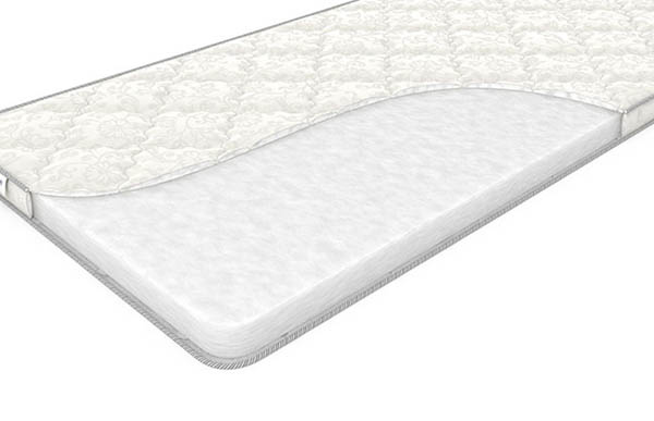 Синтетический материал, из которого сформирован матрас, представляет собой плотно спрессованные (спаянные) полиэстеровые волокна. В результате прессования при высокой температуре получается упругая и устойчивая к деформациям плита, сохраняющая идеально плоскую форму и первоначальный объем под весом человеческого тела.